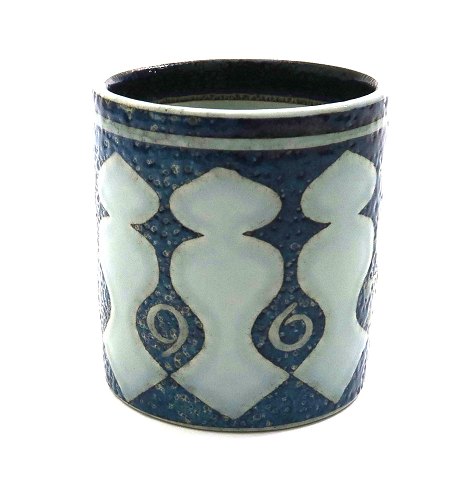 Lille fajance krus designet af Niels Thorsen, H. 7,3 cm.