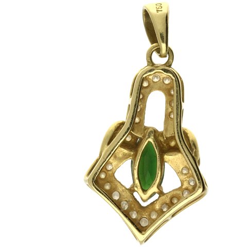 Vedhæng af guld 18kt. fattet med mørk grøn sten og diamanter ialt ca. 0.26ct.