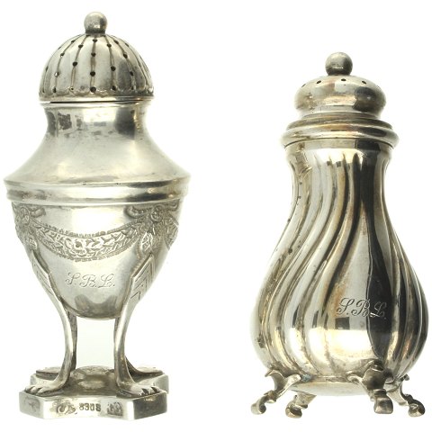 1 sæt af sølv og bakelit - 1 strøbøsse i rokoko-stil - 1 strøbøsse i empire-stil.