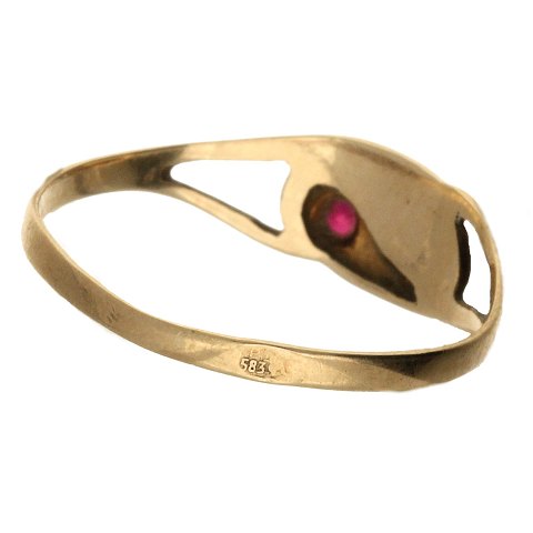 Russisk ring af guld 14kt.(.583) fattet med rød sten.