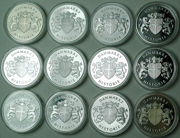 1 kilo finsølv i form af 40 stk Danmarks Historie medailler af STERLINGSØLV