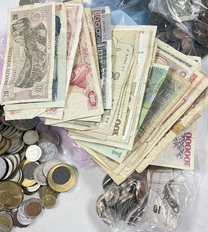 Stort 'samlerparti' af forskellige genstande, 8.7kg mønter, sedler og andet