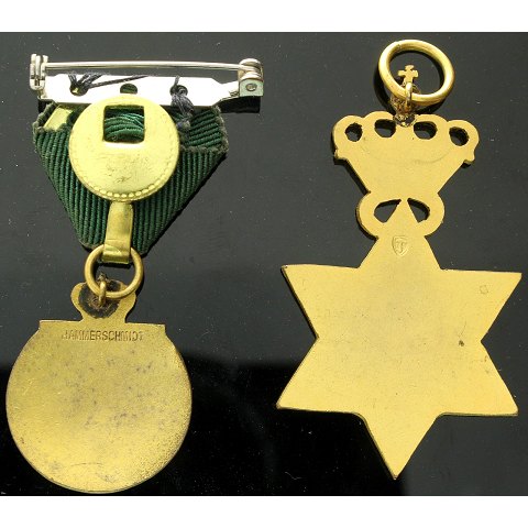 1. Frimurerorden af emaljebelagt metal, tilskrevet Sankt Andreas ordenen. Bagsiden med fremstillerens stempel Hammerschmidt. L. 62 mm.