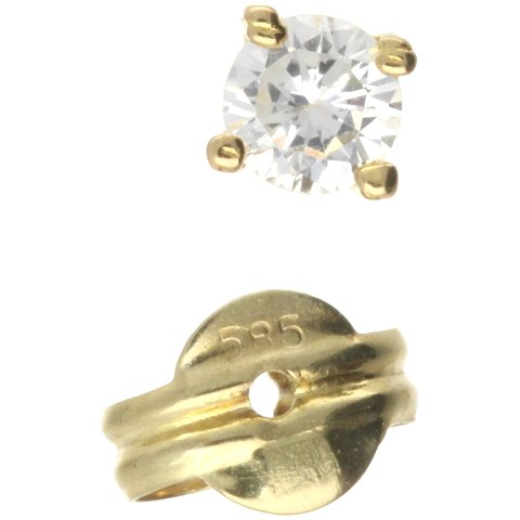 Enkelt ørestik af guld 14kt. fattet med klar sten - (30928G)