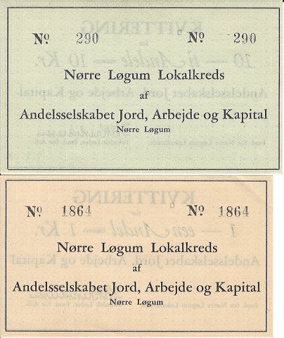 Nørre Løgum Lokalkreds - 1 og 10 kroner - Juli 1931 - Blanketter - 2 stk