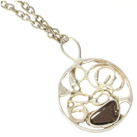 Halskæde af uædelt metal med vedhæng af sølv, fattet med ametyst.