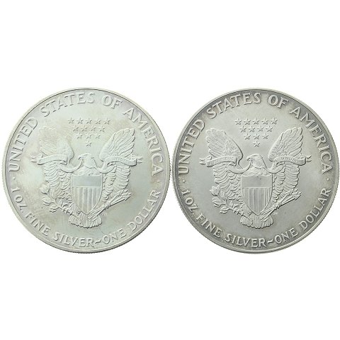 Lot, USA- 2x 1 Dollar "American Silver Eagle" - 1986, 1992 - FINSØLV - UNC - KM# 273
