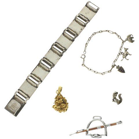 2 armlænker - 2 vedhæng - 1 nål af uædelt metal.