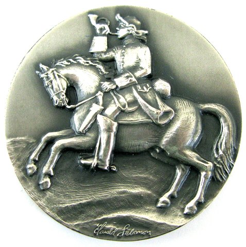 350 års jubilæumsmedalje af sterling sølv *Post og Telegrafvæsnet 350 år, 1624-1974*, præget af medaljør ved Den Kongelige Mønt, Harald Salomon. Præget i 1000 eksemplarer. Vægt: 85,5 gr.