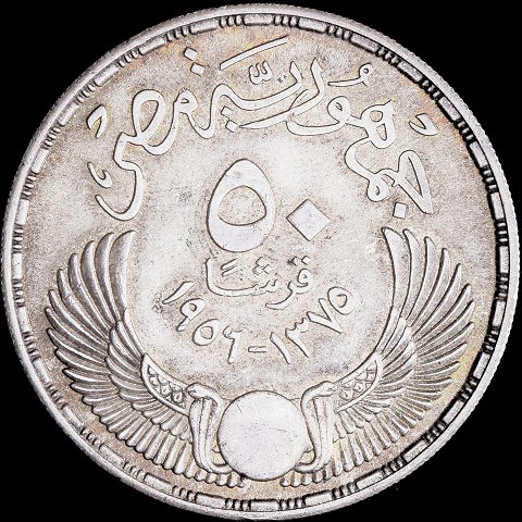 Egypten - 50 Qirsh - 1956 (1375) - Evacuation of the British - Sølv - KM# 386