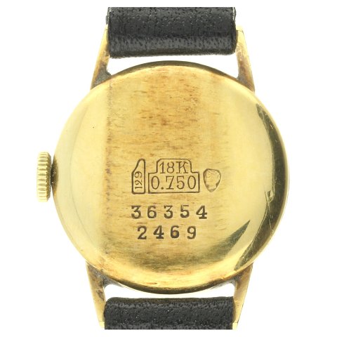 Uret har en 19mm kasse af guld 18kt. kassen er monteret på en sort læderrem, afsluttet med c-spænde af stål. Uret har en fin sølvfarvet skive med stregindeks. Uret er udstyret med et mekanisk værk med manuelt optræk.