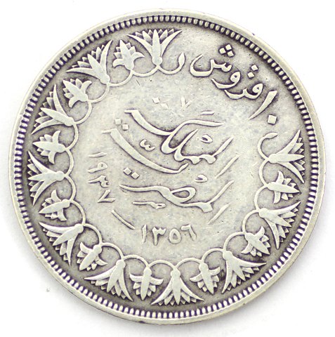 Ægypten, Farouk, 10 Piastre, AH1356/1937, sølv