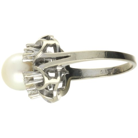 Ring af hvidguld 14kt. fattet med perle og brillanter, ca. 0.30ct.