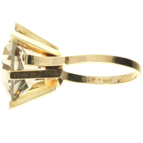 Ring af guld 14kt. fattet med stor røgfarvet sten