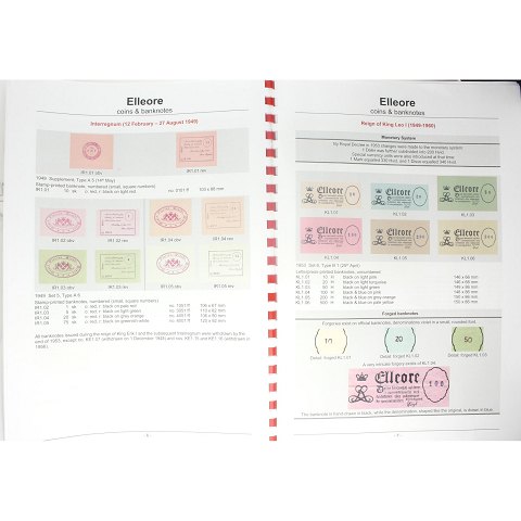Kongeriget Elleore - Illustrated banknotes and coins listing - 38 sider. Kataloget er udgivet i år 2019.