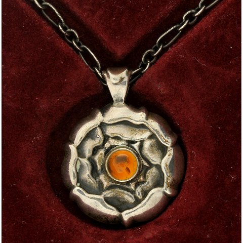 Georg Jensen. 'Juli' månedshalskæde prydet med karneol