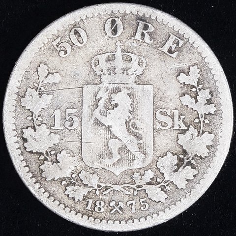 Norge - 1875 - 50 Øre / 15 Skilling - Oscar II - KM# 346