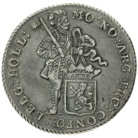 28.25 gram, 0.873 sølv. Usædvanlig sidste år af staten holland sølv dukat.
