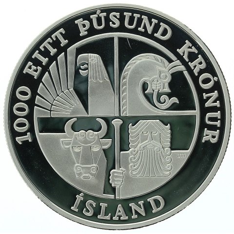 Island - 1000 Krónur - 2000 - Leif Ericsson - sølv - KM# 37