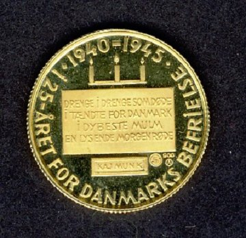 Mindedukat, 25 året for Danmarks befrielse, 1940-1945 - 3,5 gr guld .900