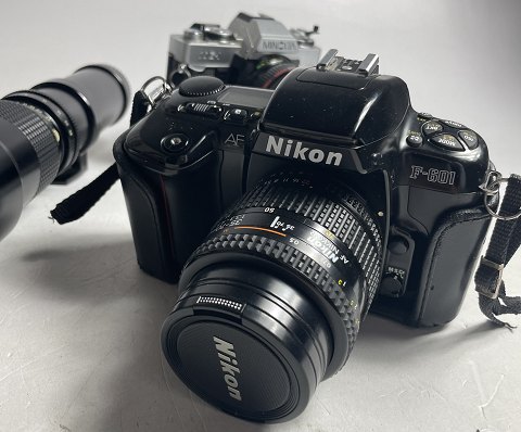 Minolta XG-1 og Nikon F-601 - med ekstra 500mm linse