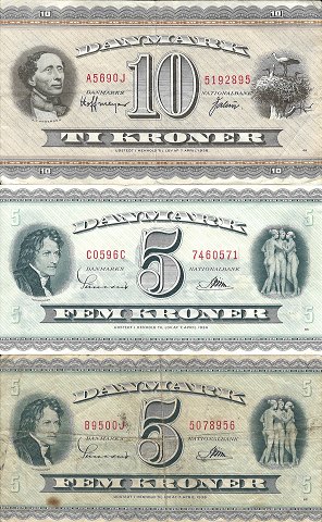 Danmark - 1-50 kroner - 1921-69 - 9 stk pengesedler