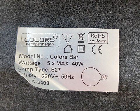 Colors by Copenhagen - Bordlampe, model colors bar med stel af træ, monteret med fem glødepærer.
