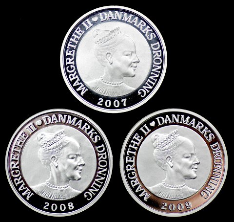 Margrethe II, 100 kr. finsølv proof, 2007 – 2009 *Polarmønter* - hele serien. (3)