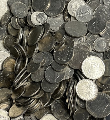 Mønter, du ser, er de mønter, du køber. Meget forskelligartet lot fra ophørt mønthandel. Næsten kun kobber-nikkel-mønter.