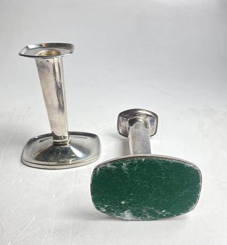 Cohr - Par lysestager med rektangulær fod og lysmanchet, udført af sølv. Stemplet Cohr, 830s.