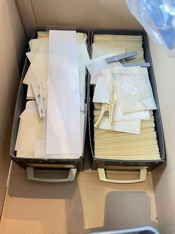 Stor frimærke samling - 7 kartotekskasser med talrige frimærkeclichéer