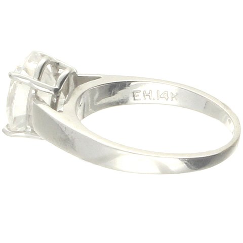 Ring udført af 14 kt. hvidguld prydet med en klar sten. Stemplet EH., 14K. Ringstr: 53. Vægt: ca. 4,6 gram.