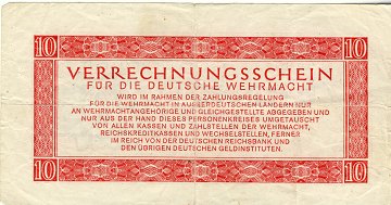 Tyskland, 10 reichsmark 1944 verrechnungsschein