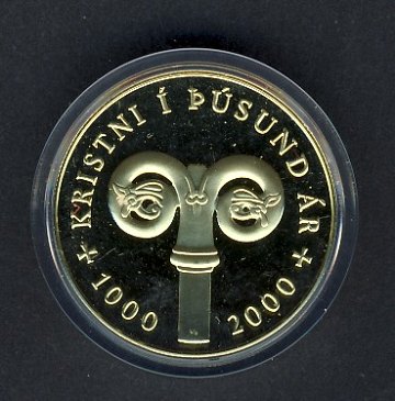 Island, 10.000 kronur GULD 2000, oplag kun 3.000 stk og heraf er der efter sigende smeltet en stor del. SJÆLDEN