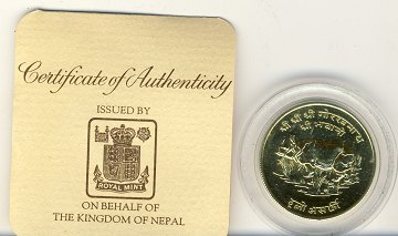 Nepal, 1000 Rupee GULD 1974, 0,9676 ounce finguld