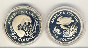 Costa Rica, 50 + 100 colones 1974 - sølv