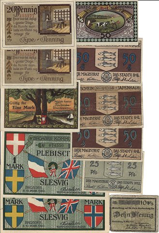Danmark - Notgeld - Slesvig, Sonderburg, Aabenraa, Rødding, etc. - ca. 78 stk