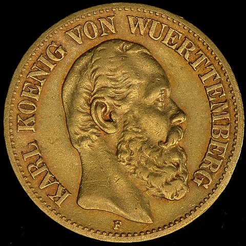 Tyskland - 10 Mark - Karl von Wuertemberg - GULD - KM# 264