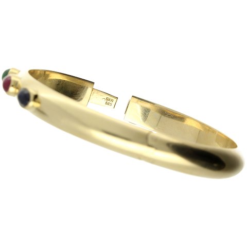 Skriver - Armring af guld 14kt. fattet med grøn, blå og rød sten.
