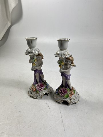 Von Schierholz - Par lysestager af porcelæn med putti figurer, blomster og bladværk. Produceret i Tyskland.
