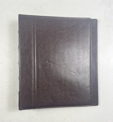 Brun mappe i imiteret læder til opbevaring af dokumenter, eksempelvis møntcertifikater.