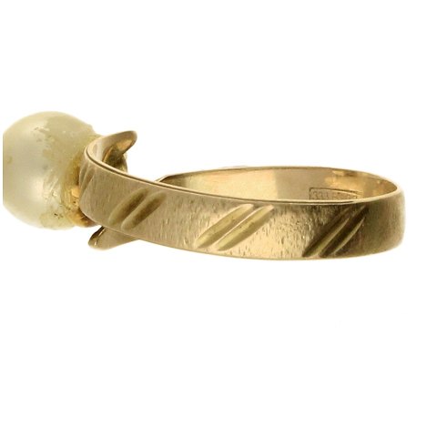 Ring udført af 8 kt. guld, åben ringskinne, fattet med en simili perle. Ringstr: 59. Vægt: ca. 2,4 gr.
