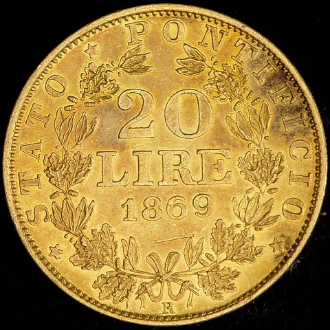 Vatikanet - 20 lire - 1869 - XXIV - Pius IX - guld