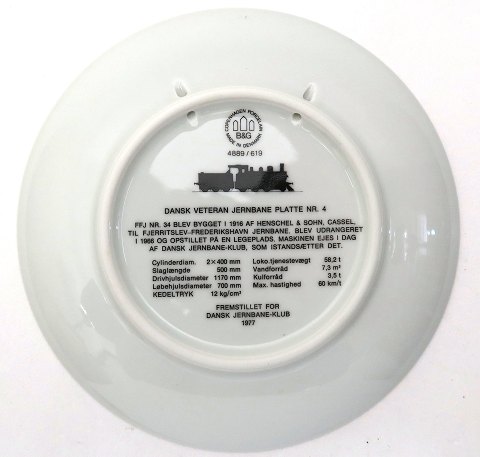 Bing & Grøndahl Jernbaneplatte #4 *FFJ nr. 34 damplokomotiv*