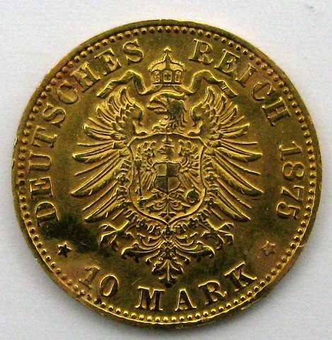 Baden, 10 mark 1875 G, KM# 264