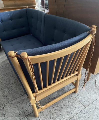 Børge Mogensen (1914-1972) - To-personers tremmesofa med stel af lakeret bøgetræ, hyndesæt betrukket med knapsyet blåt uldstof. Formgivet i 1945. Fremstillet hos Fritz Hansen, model 1789. H. 86 cm. L. 160 cm. Fremstår med alm. brugsspor.