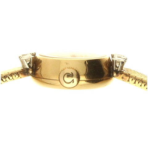 Omega - damearmbåndsur af guld 18kt fattet med diamanter, ca. 0.42ct.