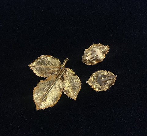Broche samt øreclips af forgyldt metal. Ustemplet.