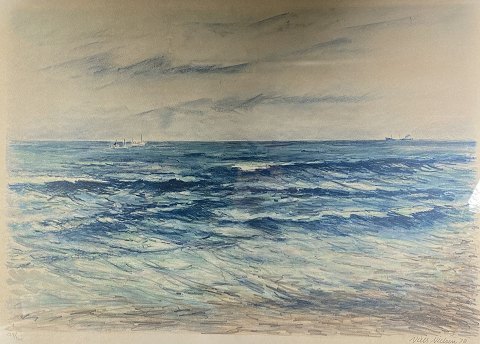 Niels Nielsen - Motiv med havet, litografi, nummereret 127/300. Sign. samt dateret 78.