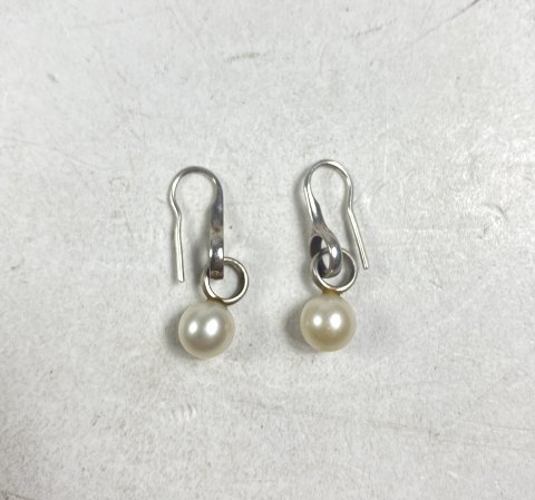 Georg Jensen - Sphere øreringe udført af sterling sølv fattet med to kulturperler. Vægt: ca. 3,87 gr.